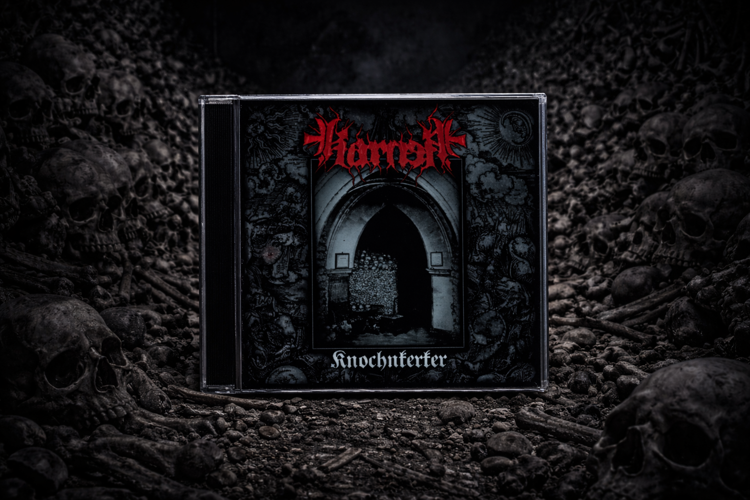 The sound is deliberately harsh, grim and uncompromising, capturing the spirit of the underground rather than polished studio perfection. Echoing themes of death, decay and ancient darkness, Knochnkerker drags the listener into a suffocating world of bones, graves and shadow.